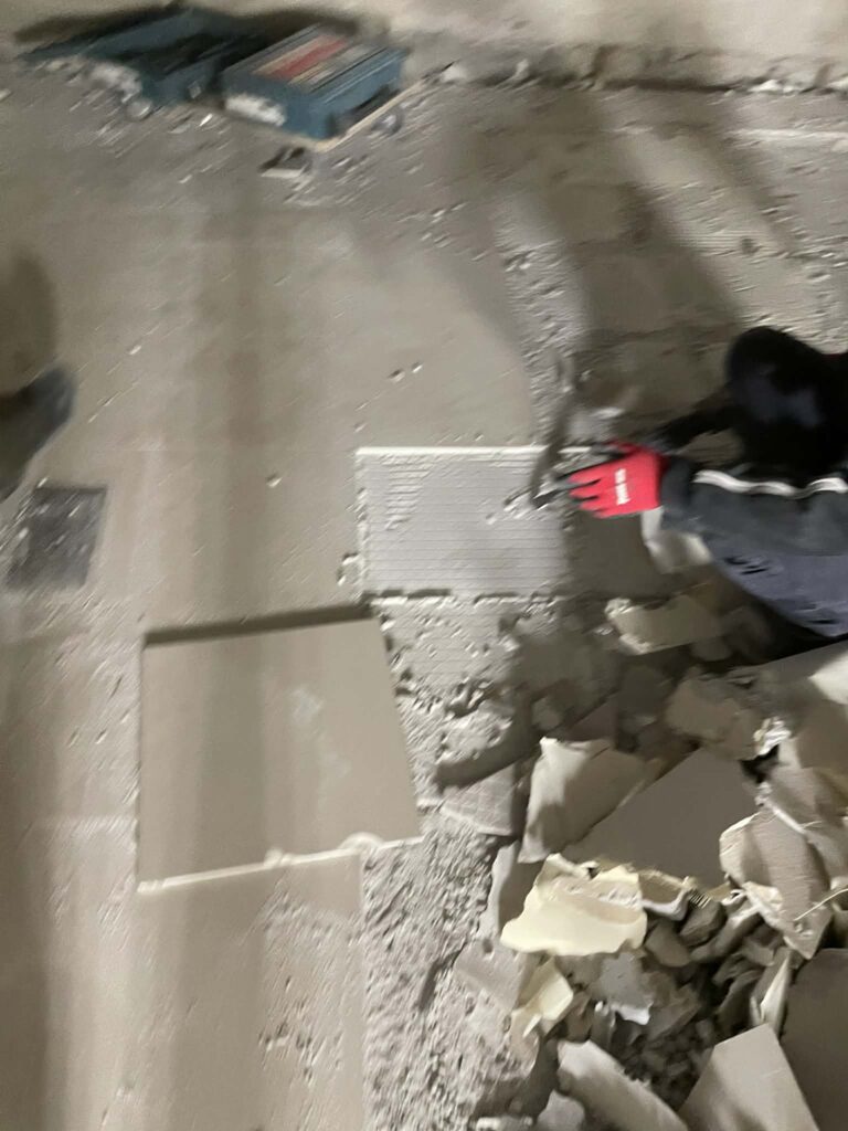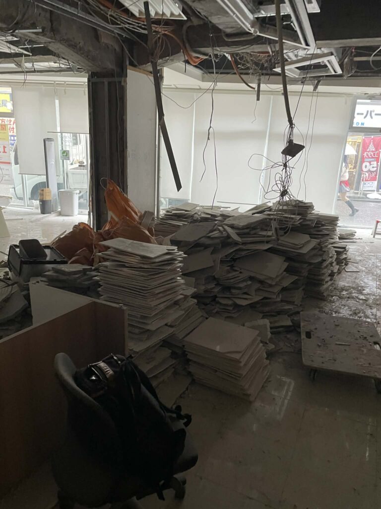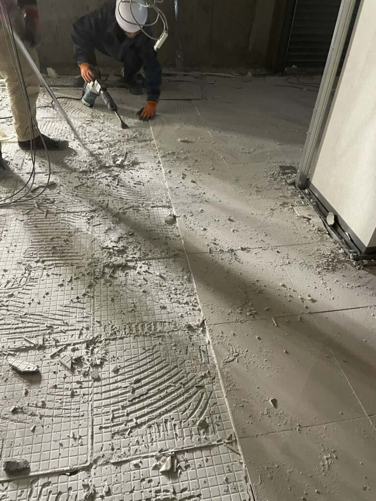 ・内容:解体工事に伴う内装解体、床タイル斫り、集積、搬出(弊社より5名体制 施工期間 5日間)