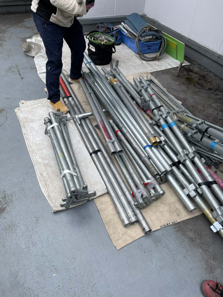 ①足場材(単管)を搬出します