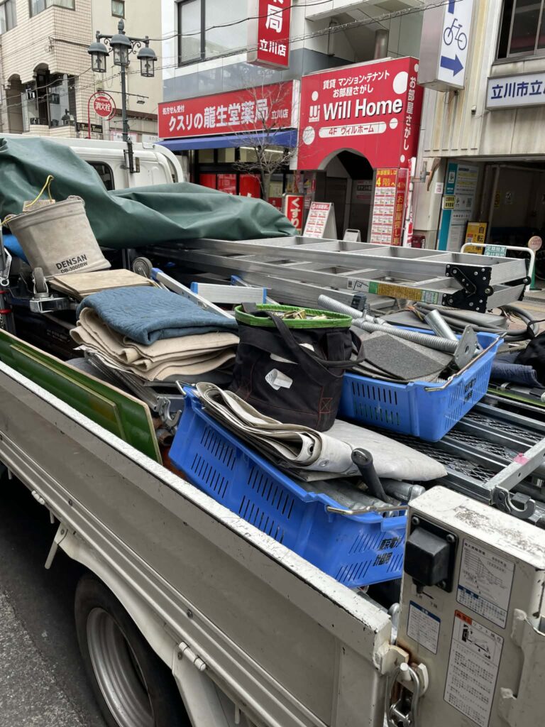 改修工事に伴う足場単管の搬出、移動、積込【有限会社アーク様】東京都立川市柴崎町