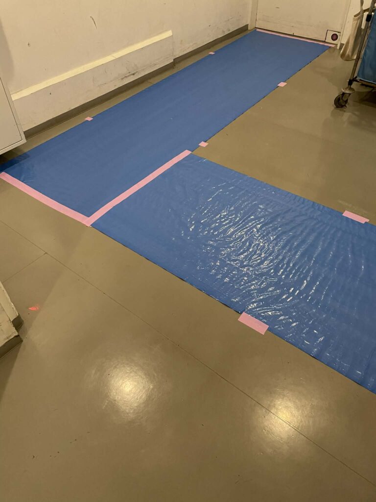 ①まず室内、搬出動線(共用部)の養生をします。